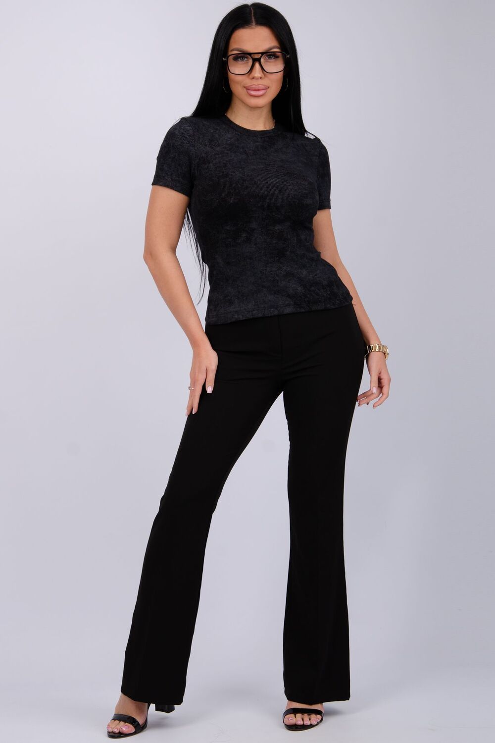 Футболка женская с коротким рукавом (хлопок с эластаном). Цвет: черный; Материал: кашкорсе;кашкорсе; Состав: 95% хлопок, 5% эластан.