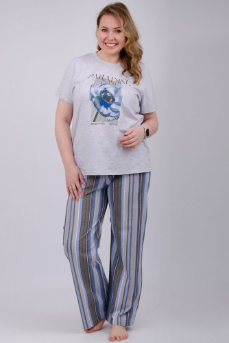Наша пижама выполнена из мягкого и приятного на ощупь трикотажа, который обеспечивает максимальный комфорт во время сна и отдыха. Материал прекрасно дышит, не вызывает аллергии и раздражения кожи. Благодаря своей структуре он сохраняет тепло в холодное время года, и создает ощущение легкости и свежести в летнее время. Пижама представлена в нескольких размерах, включая большие, чтобы каждая женщина могла найти подходящий вариант, который подходит именно вам.