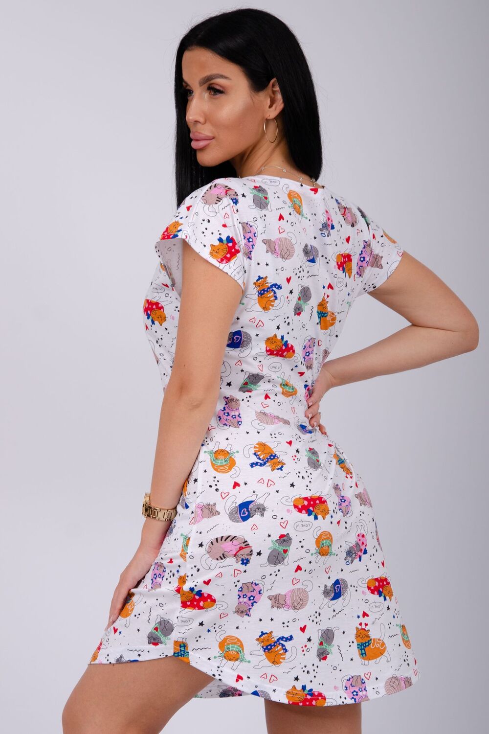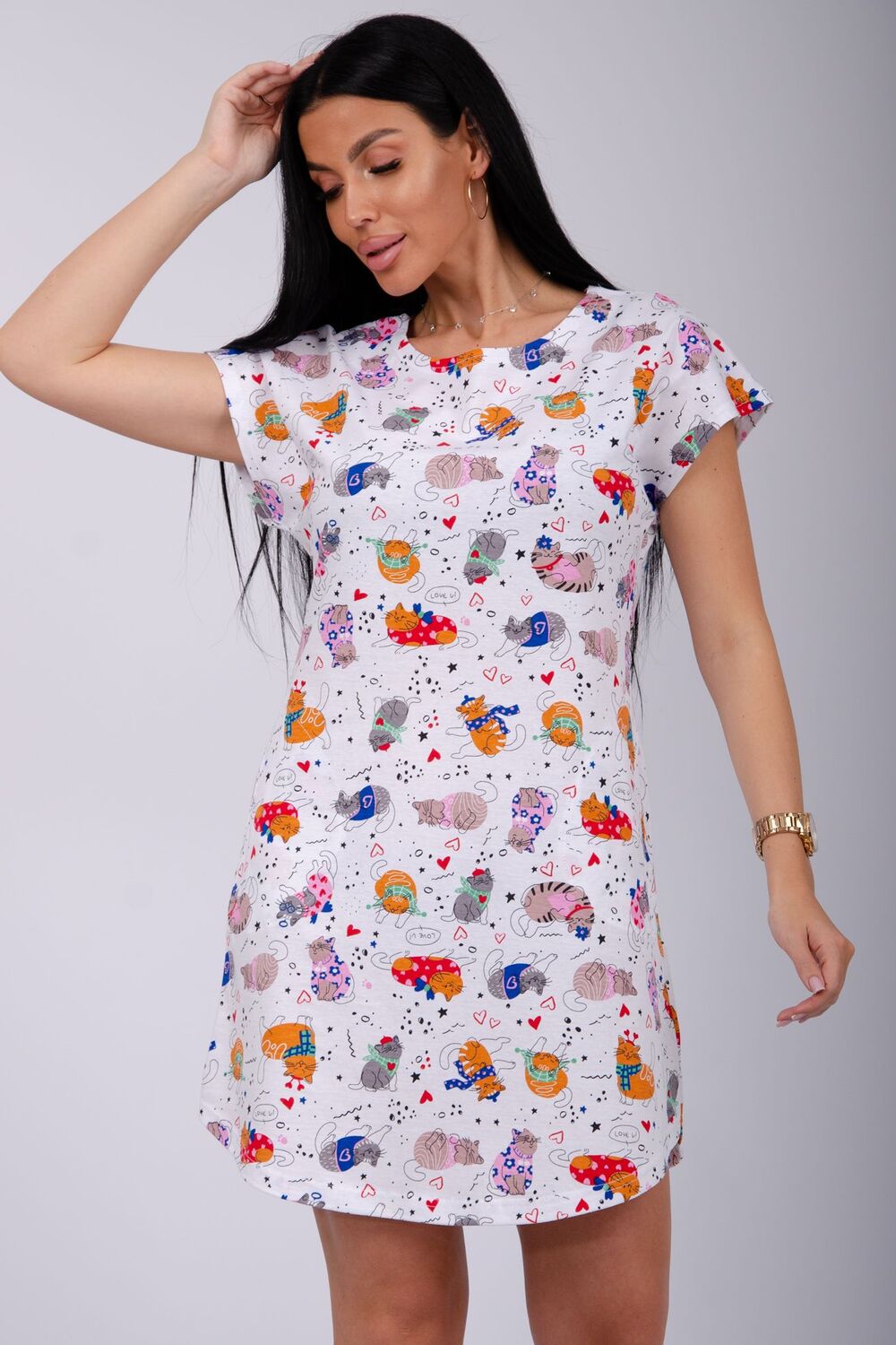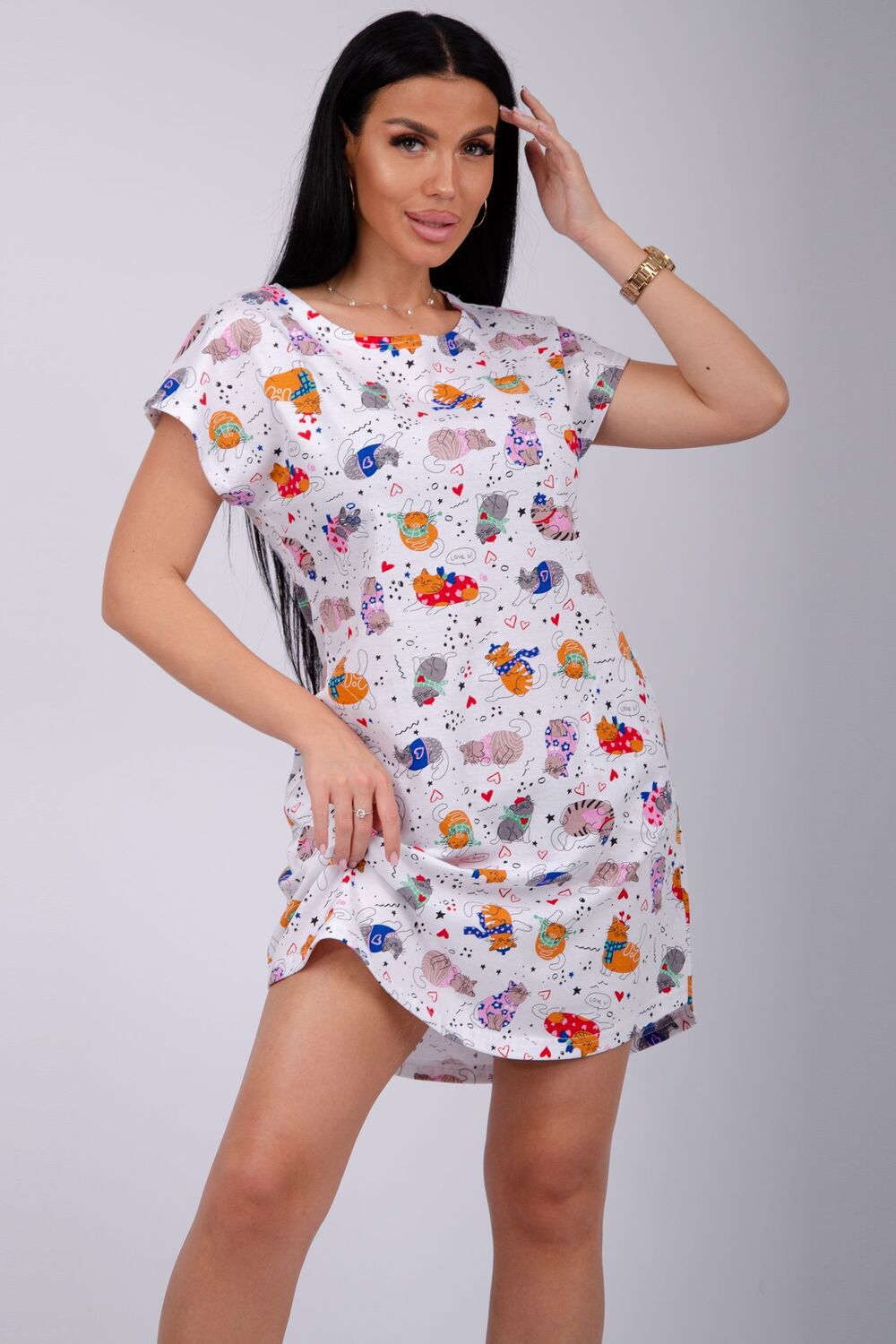 Женская туника полуприлегающего силуэта выполнена из 100% хлопчатобумажной ткани. Модель такого плана - уютная, комфортная, стильная, подойдёт для повседневной носки, прогулок с ребёнком, в качестве базовой домашней одежды. Изделие хорошо сочетается с разными предметами гардероба создавая новый образ на каждый день. Цвет: котята; Материал: кулирка; Состав: 100% хлопок.