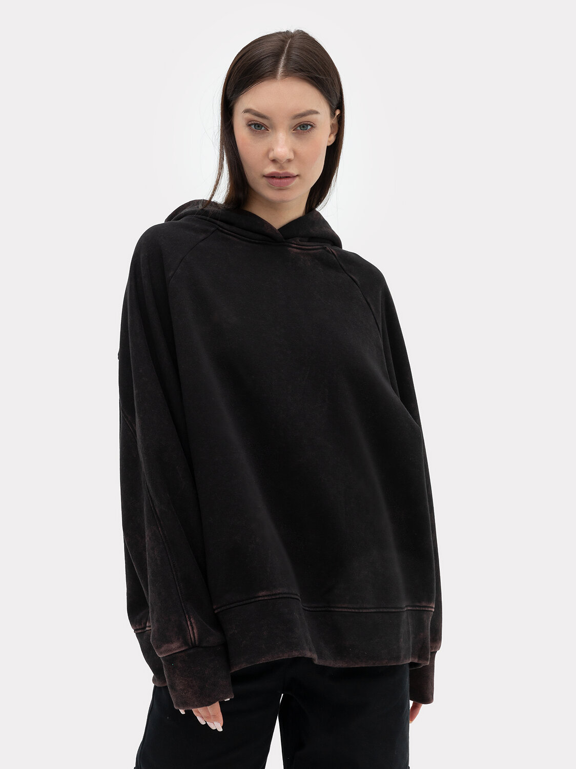 Базовое худи женское свободного силуэта из высококачественного хлопка. Материал изделия - нежный футер с подчесом. Вырез круглой формы, с уютным капюшоном. Рукава типа реглан, с широкими манжетами. Изюминкой худи является горизонтальный шов-членение на спинке и широкий свободный в нижней части. Худи женское с капюшоном имеет расслабленный силуэт. Если вам нужен базовый и универсальный вариант, который можно комбинировать со множеством вещей, тогда эта модель для вас. Стильное и удобное, в линейке широкий размерный ряд, такое худи женское подойдет на женскую фигуру любого типа. В линейке много разных расцветок, есть спокойные и яркие цвета, а также модели с интересными принтами. Отличное худи женское свободное для спортивных занятий, домашнего отдыха и прогулок. Купить худи женское недорого можно у нас на сайте или магазине Mark Formelle. Рекомендуем!