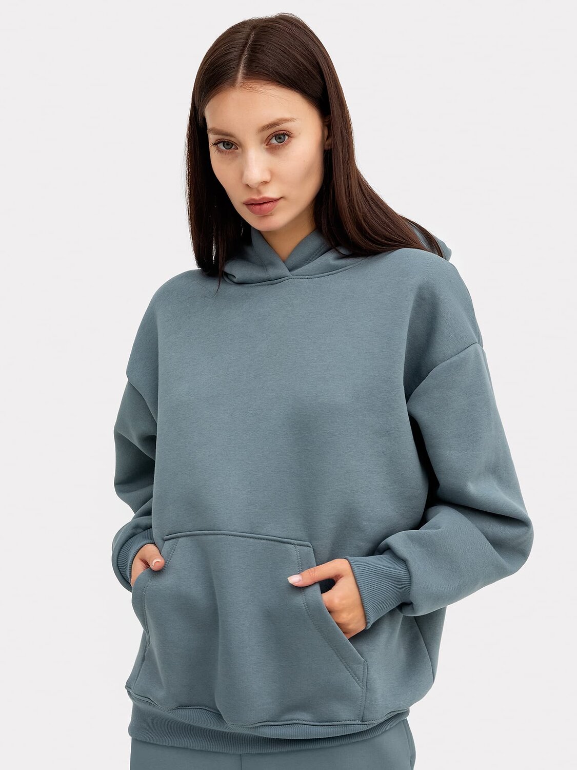 Анорак изготовлен из трикотажного полотна футер. Анорак свободного силуэта (оверсайз), с капюшоном. Горловина округлой формы. Капюшон со средним швом, на подкладке из осн. полотна. Плечо спущено, рукав втачной длинный. По низу рукава отрезная манжета из рибаны.