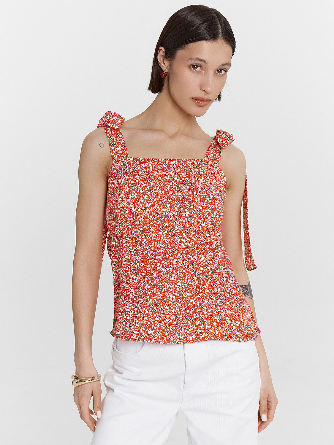 Этот нежный женственный топ — воплощение элегантности и романтичного стиля, идеально подходящий для летних образов. Широкие бретели, завязывающиеся в изящные банты, придают модели утонченность и позволяют регулировать посадку, создавая игривый акцент Лиф и спинка собраны на эластичную тесьму, что обеспечивает комфортную посадку и подчеркивает силуэт, делая его женственным и грациозным. Лиф на подкладке из основного полотна добавляет плотность и удобство, помогая сохранить форму и обеспечивая надежную поддержку. Нижний срез обработан швом вподгибку с закрытым срезом, что делает изделие аккуратным и долговечным, защищая ткань от износа. Выполненный из легкой и струящейся вискозы, топ мягко ложится на кожу, приятен в носке и обладает хорошей воздухопроницаемостью, позволяя чувствовать себя комфортно даже в жаркие дни. Благодаря универсальному дизайну, модель легко сочетается с юбками, брюками и джинсами, создавая стильные и утонченные образы. Этот топ станет незаменимым элементом летнего гардероба, добавляя нотки романтики и нежности в любой комплект!