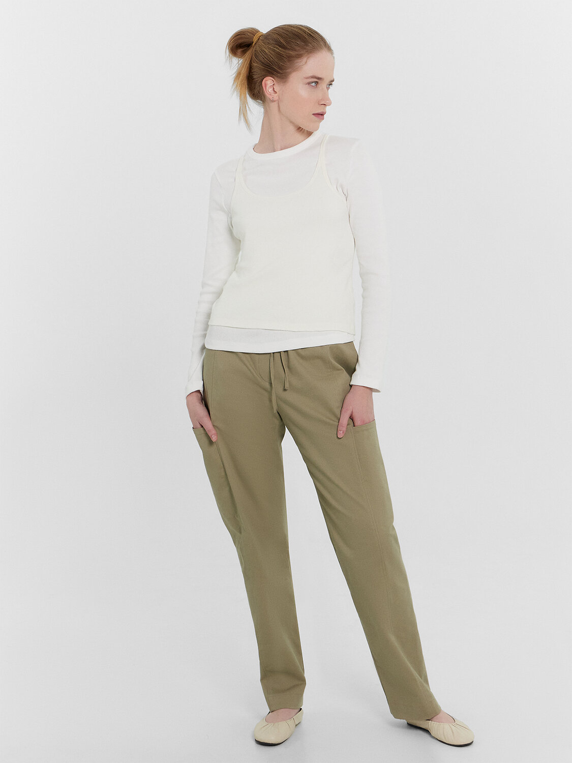 Брюки прямые, свободные.