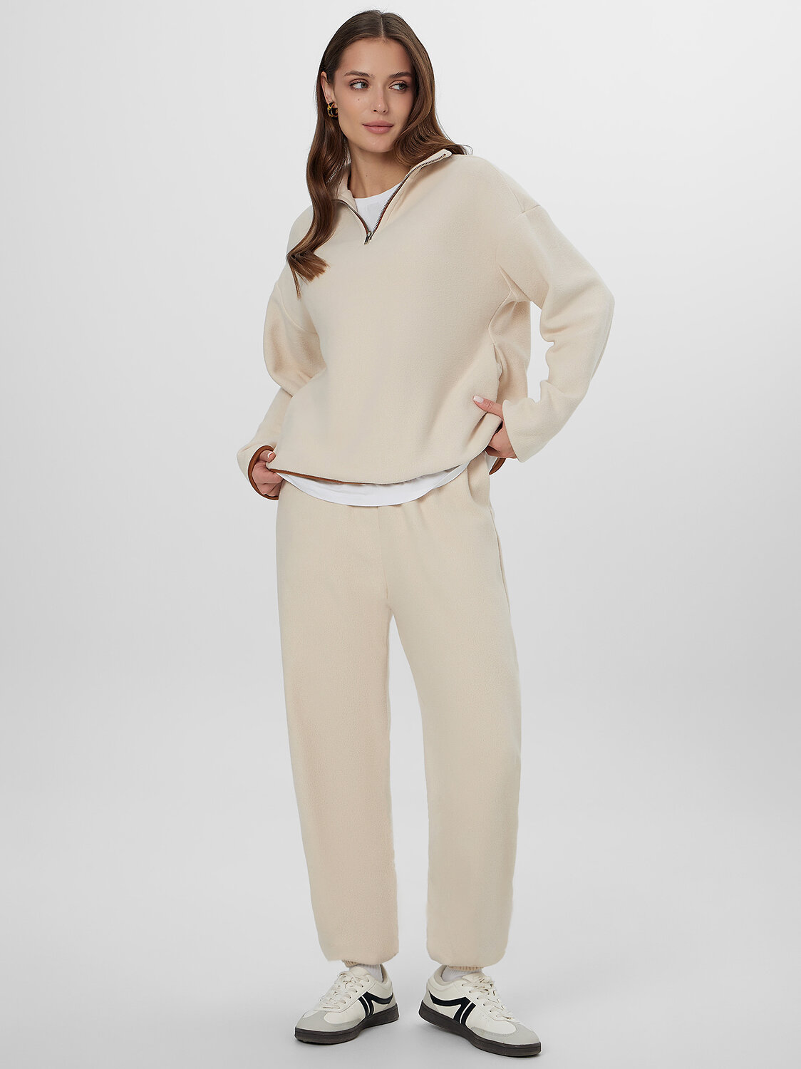 Женские спортивные брюки из флиса без подчеса, материала, который отличается мягкостью и теплотой, обеспечивая комфорт даже в прохладные дни. Эта модель прямого кроя с средней посадкой идеально подойдет для активного отдыха и повседневного ношения. Эластичный пояс на кулиске обеспечивает удобную посадку, а боковые карманы с подкладкой из кулирки добавляют практичности и функциональности. Эти брюки станут вашим незаменимым выбором для создания стильных и удобных образов.