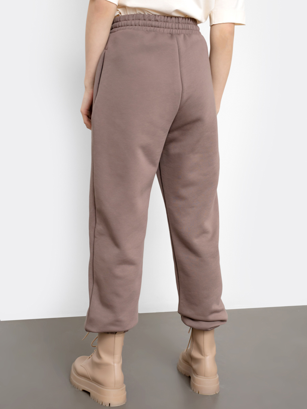 Женские брюки свободного силуэта из трикотажного футера с подчесом. На передних деталях застрочены стрелки. Пояс с эластичной тесьмой внутри и регулировочным шнуром-завязкой. Есть боковые карманы. Рекомендуем для ваших стильных образов! Цвет: кофе; Материал: футер 3-х нитка с начесом;футер 3-х нитка с начесом; Состав: 30% полиэстер, 70% хлопок.