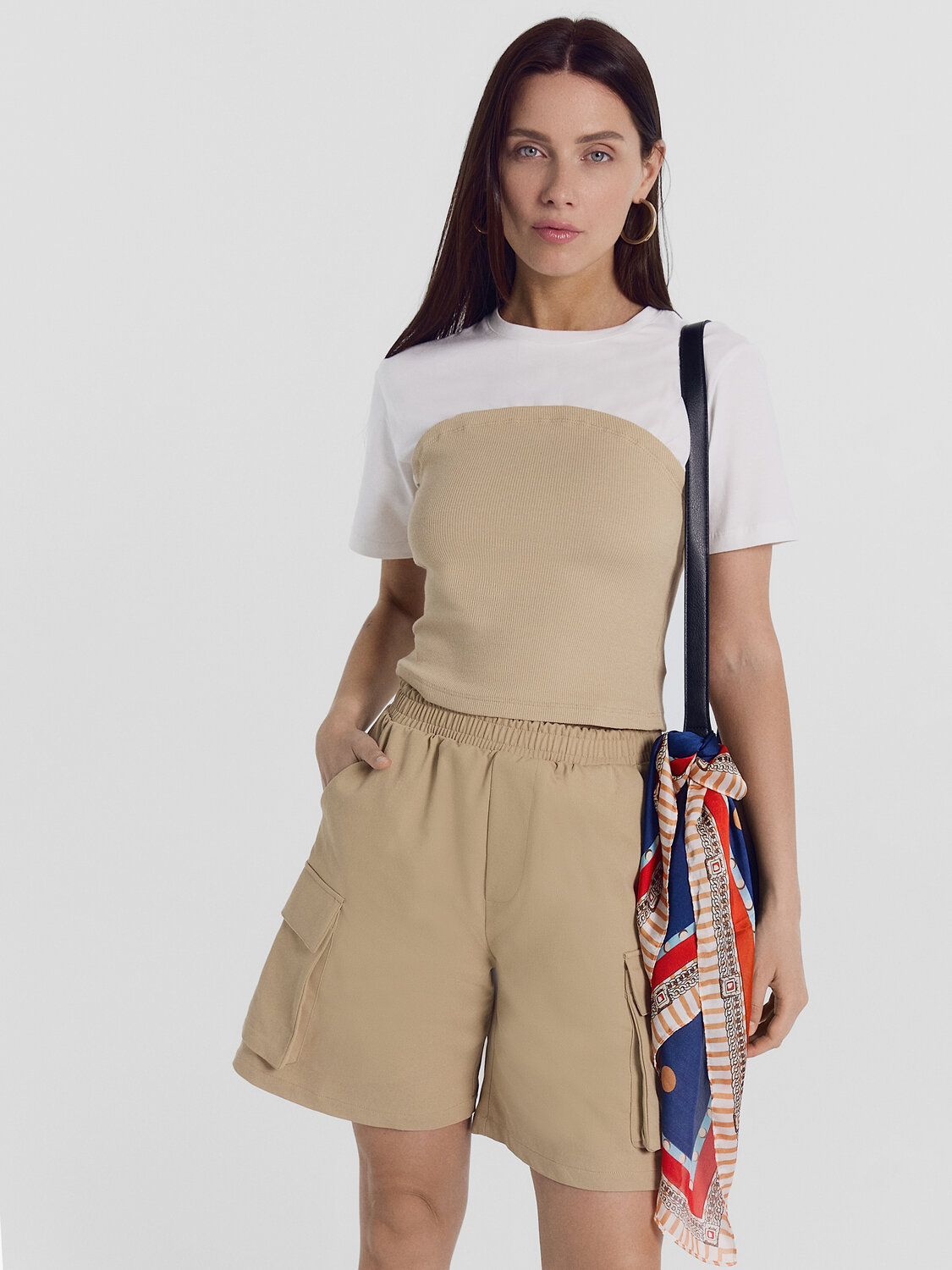 Джемпер с отрезной деталью «под корсет» из рибаны. Деталь из рибаны прилегающего силуэта.