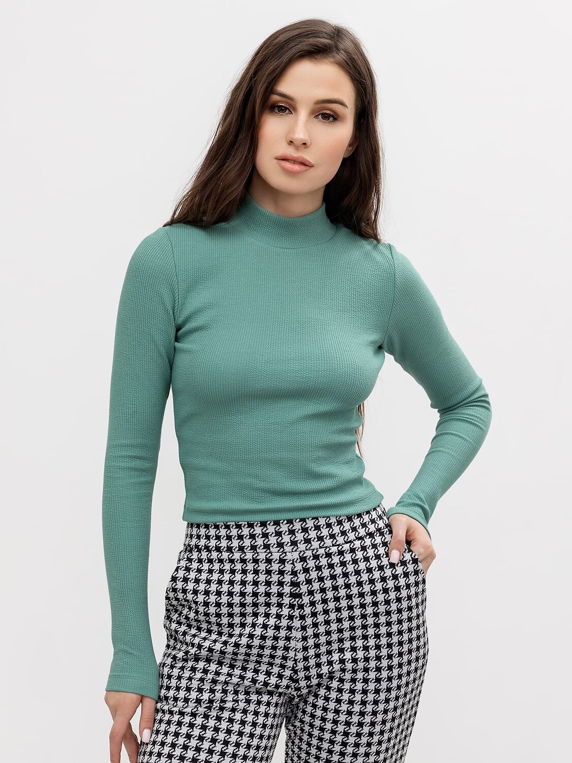 Джемпер женский из высококачественного материала - интерлок в рубчик. Лонгслив прилегающего силуэта с втачным длинным рукавом, с отрезной прилегающей стойкой. Длина изделия ниже линии талии. Стильный укороченный вариант джемпера поможет создать вам много стильных и красивых образов. Такую укороченную водолазку женскую можно надеть на прогулку, встречу с друзьями, путешествие, пойти в ней на свидание и кино. Материал плотный, слегка тянется, отлично держит форму, не линяет при стирках и не выцветает при правильном уходе. Если вы в поиске универсальной базовой кофточки, этот вариант отлично вам подойдет. Линейка имеет широкий размерный ряд, есть много красивых базовых расцветок. Купить укороченный джемпер недорого можно у нас на сайте и в магазинах Mark Formelle. Порадуйте себя красивыми подарками!
