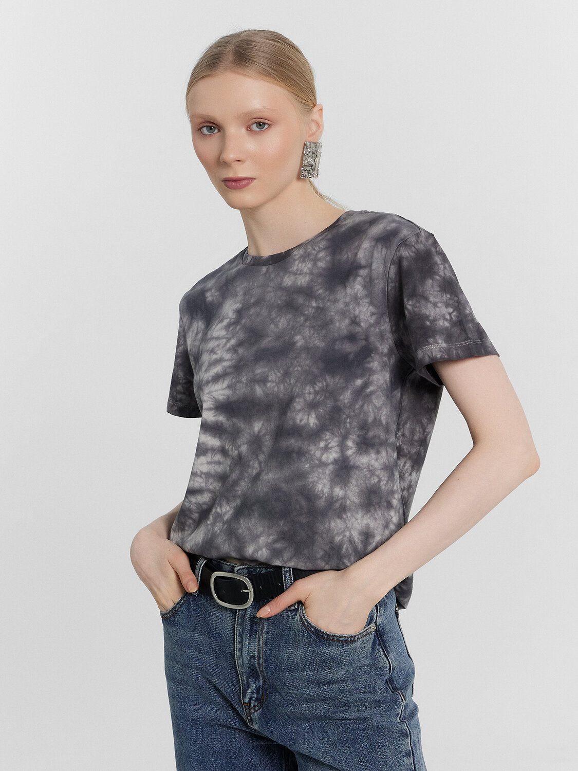 Стильная футболка из новой коллекции Mark Formelle. Для выполнения этой модели использовали хлопковую кулирку - мягкий и в тоже время прочный материал, который обладает отличной воздухопроницаемостью, позволяя коже дышать, обеспечивая комфорт в течение всего дня. Кроме того, она прекрасно сохраняет форму и устойчива к износу, что делает изделие долговечным. Эта футболка имеет круглую горловину и широкие рукава со спущенной линией плеча, обеспечивающие свободу движений.
