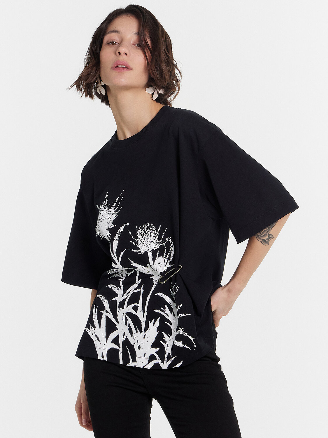 Создавайте современные образы с новой футболкой оверсайз для женщин от Mark Formelle. Эта модель выполнена из нежной кулирки, что делает её невероятно мягкой и приятной к телу. Кулирка - это натуральный материал, который отлично пропускает воздух, позволяя коже дышать, а также обладает высокой износостойкостью, что гарантирует долговечность изделия. Футболка имеет круглую горловину и короткие рукава со спущенной линией плеча, создавая современный и расслабленный образ. Она идеально подходит для повседневных образов и станет незаменимой частью вашего гардероба, сочетая в себе качество, стиль и непревзойденный комфорт.