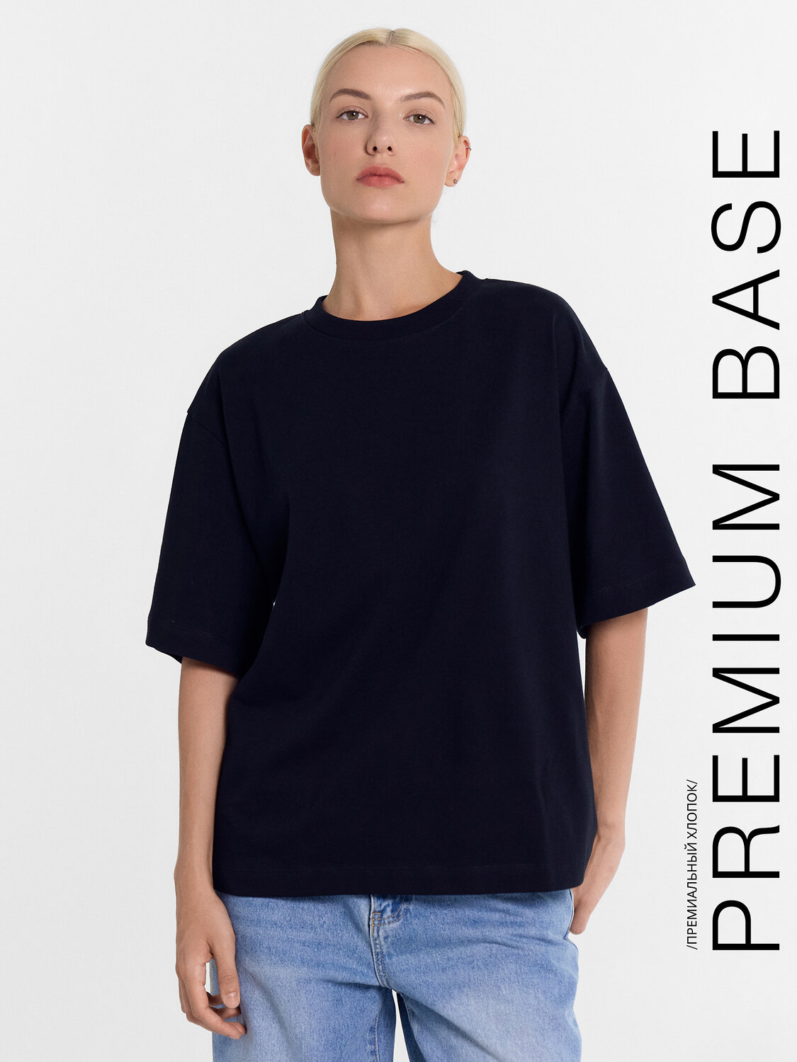 Нижние срезы футболки и рукавов обработаны швом вподгибку.
