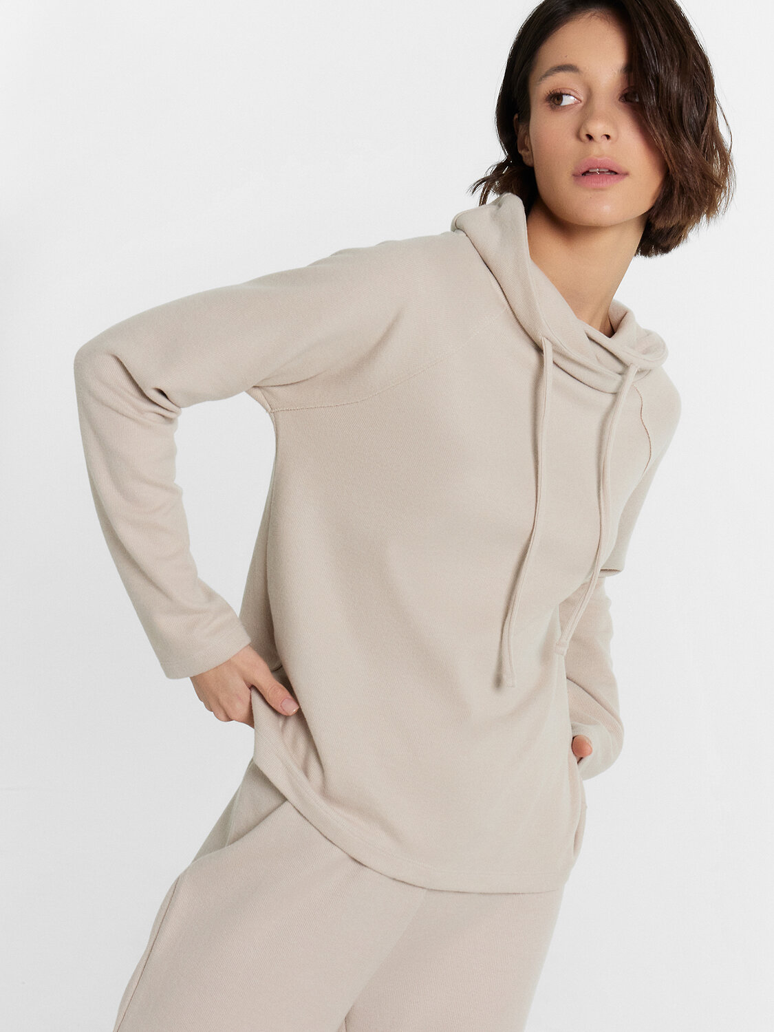 Домашнее женское худи прямого силуэта обладает неповторимым шармом, а еще он очень мягкий и красивый. Выполнен из высококачественного материала. Длинные рукава позволяют свободно двигаться и чувствовать себя комфортно во время отдыха или занятий домашними делами. Комбинирование прямого силуэта и таких рукавов создает гармоничное сочетание стиля и практичности. Круглая горловина вместе с уютным воротником придают дополнительную изюминку. Завершающим штрихом этого худи является его эстетическое исполнение. Вы будете выглядеть модно и чувствовать удобно в любой ситуации. Рекомендуем!