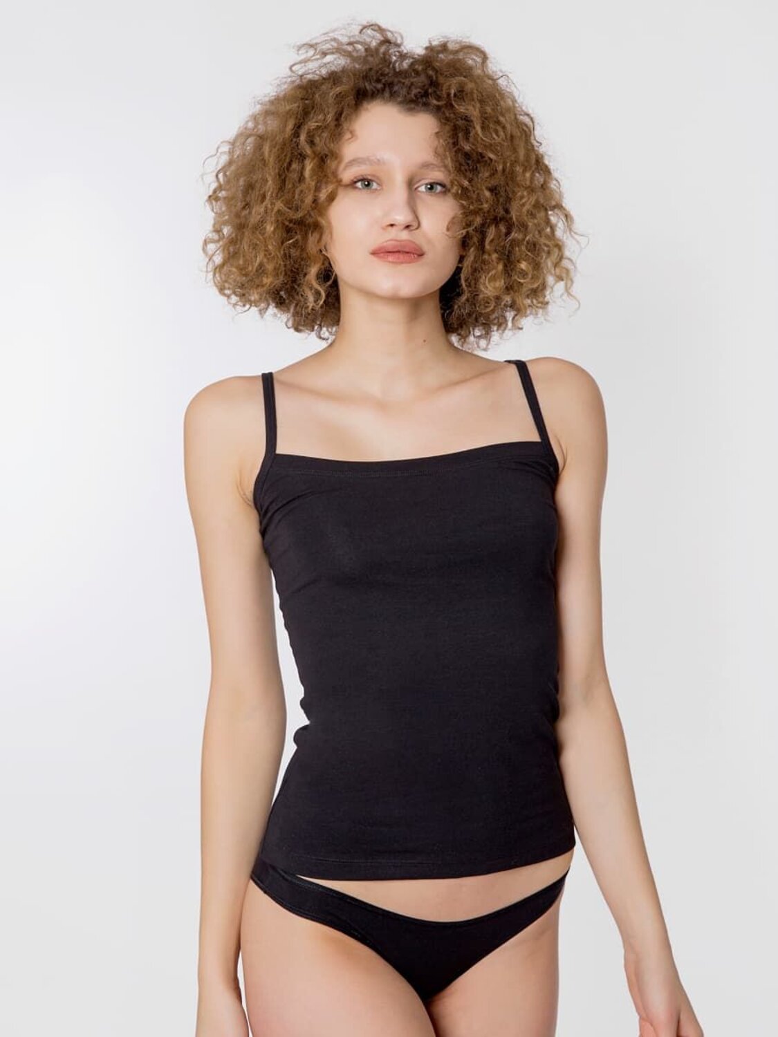 Стильный комплект, состоящий из майки на тонких бретелях прилегающего силуэта длиной до середины бедер и трусов из трикотажного полотна. Присмотритесь к этому комплекту!