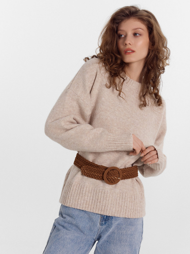 вырез горловины, рукав втачной со спущенной линией плеча. Горловина обработана обтачкой из основного полотна. По низу рукавов и свитшота притачены манжеты и пояс из основного полотна.