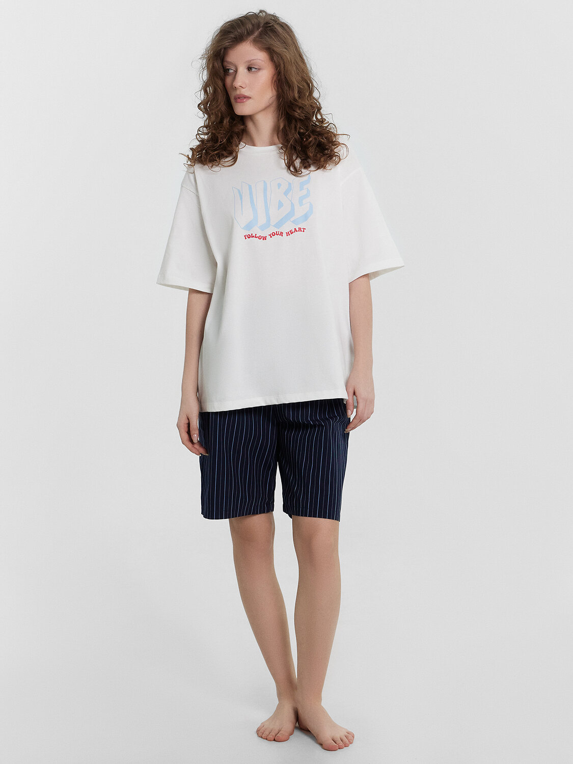 Шорты (132296) с посадкой на талии свободного силуэта, удлиненные. Пояс цельнокроеный с резиной внутри 30RV. По центру пояса пробиты петли, протянут шнур из основного полотна. Низ изделия застрочен швом в подгибку.