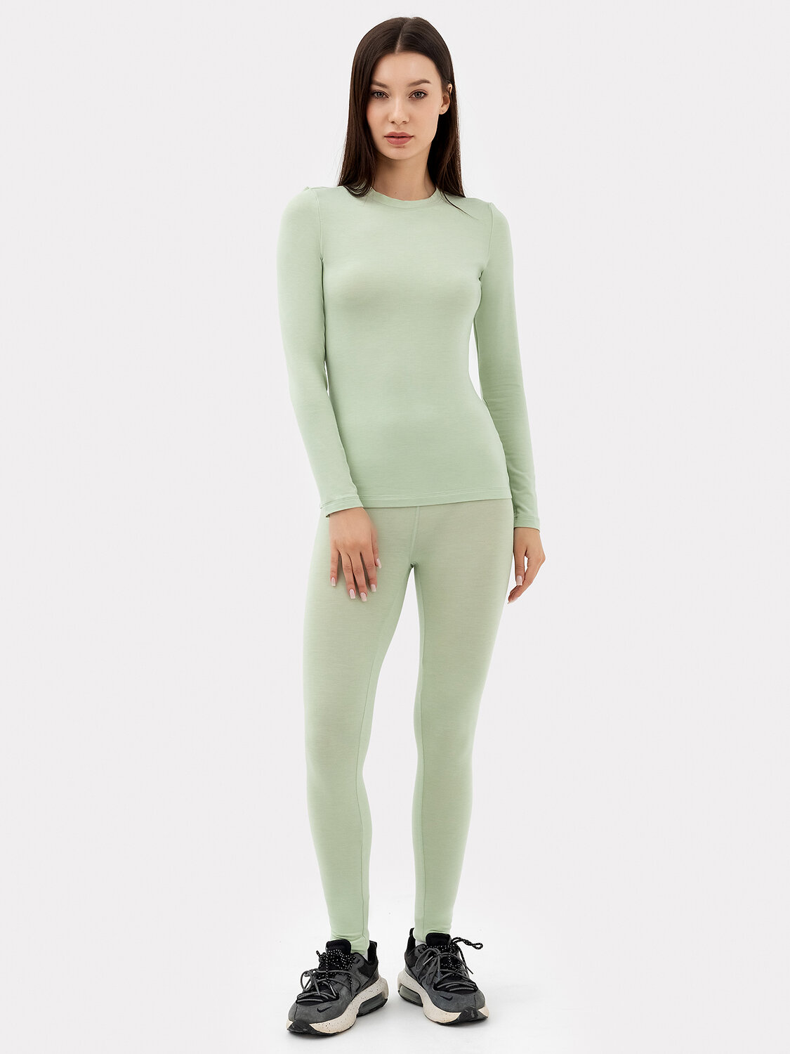 Женский комплект "термо", включающий джемпер и легинсы. Джемпер прилегающий, с длинным рукавами и классическим круглым вырезом. Легинсы плотно облегают ноги, отличаются плоскими швами, высокой линией талии и эластичной резиной в поясе. В состав полотна, созданного по японской технологии, входит микроакрил, который благодаря своей толщине (меньше волоса человека в 10 раз), создает своеобразные воздушные карманы между нитями – именно за счет этого свойства легинсы такие теплые. Технология производства ткани позволяет термобелью выдерживать экстремальные температуры до -30 градусов Цельсия. Контролируйте зиму!
