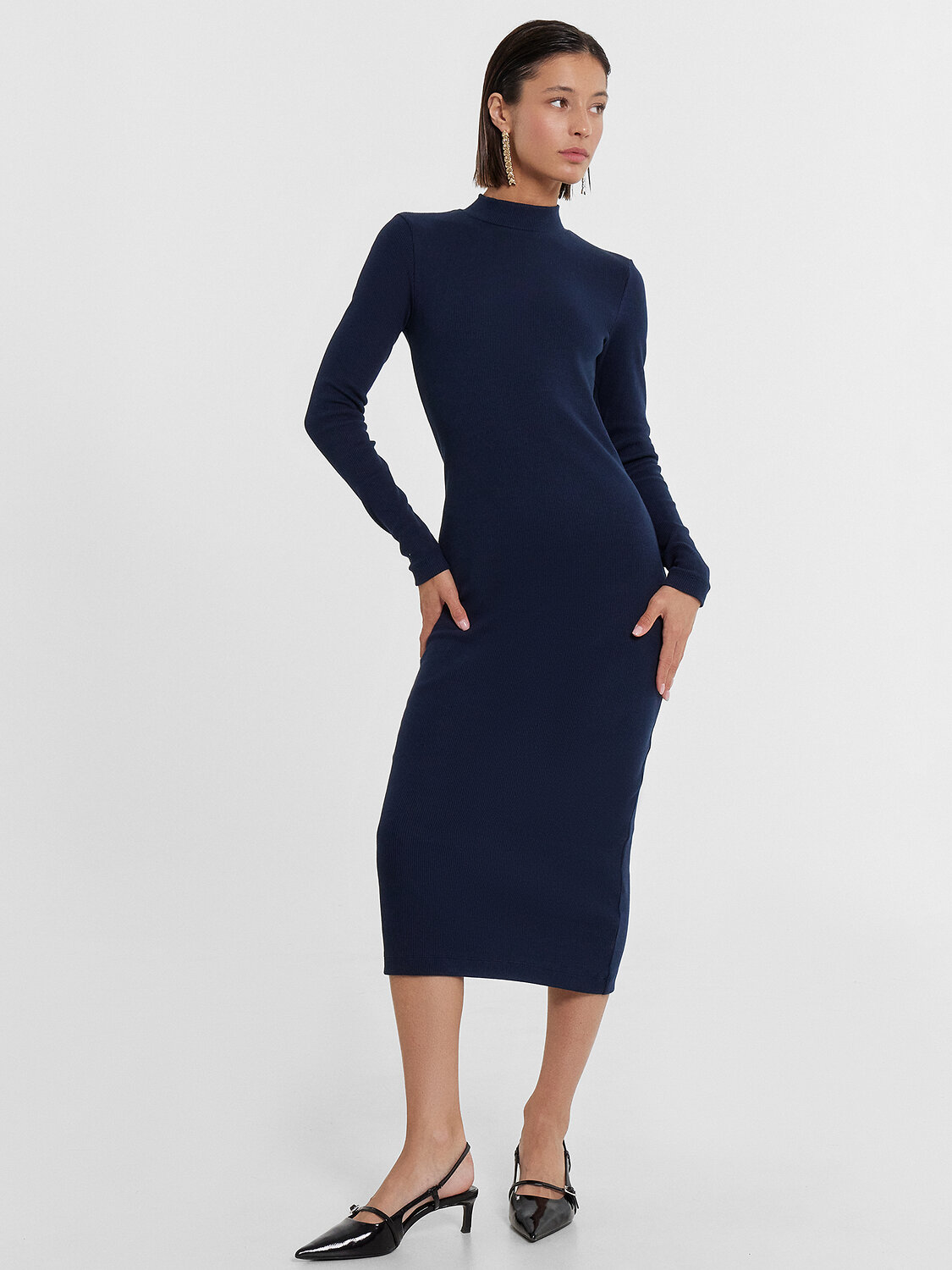 Однотонное платье женское с длинными рукавами, прилегающего силуэта из высококачественного хлопка в рубчик. Вырез круглый, с воротником-стойкой. Рукава длинные, облегающие. Длина модели чуть ниже колена. Отличное базовое платье, которое станет основой вашего стильного образа. Такое платье точно не будет ждать своего часа на полке в шкафу. В осенне-зимний период так хочется надеть что-то максимально комфортное и уютное - эта модель именно такой вариант. Облегающее платье не стесняет движений, очень комфортное в носке. Идеально подойдет для прогулок, встреч с друзьями, свидания и похода в кино. Рекомендуем!