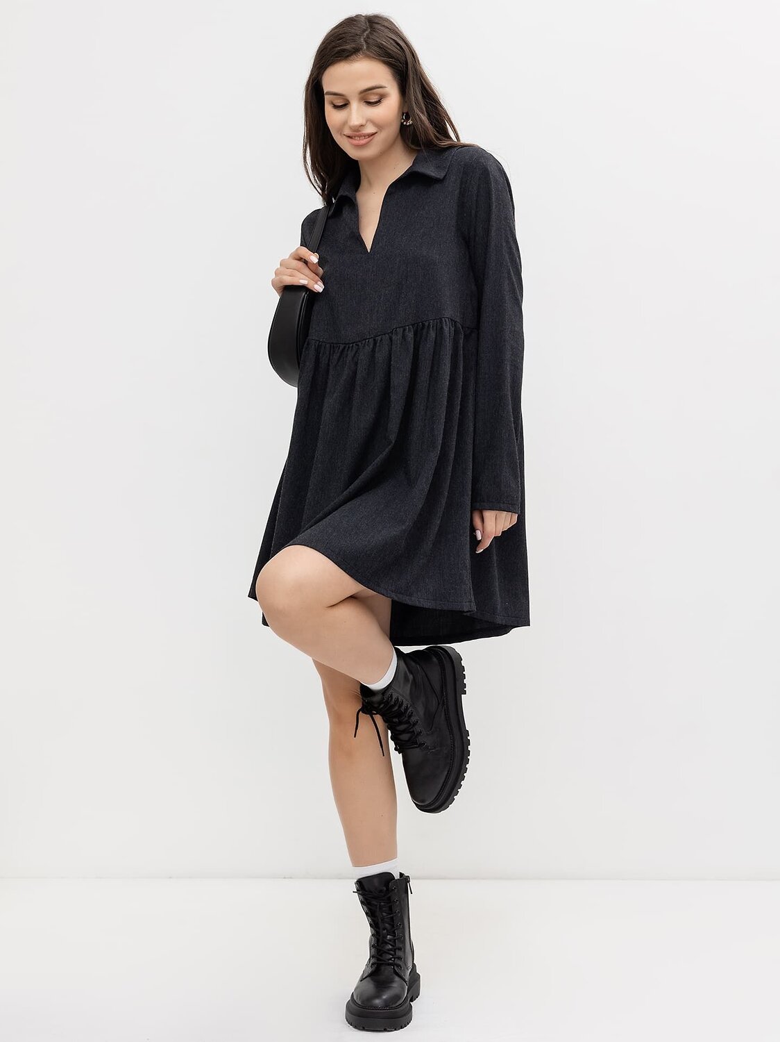 Платье женское А силуэта из высококачественного материала — базовая модель вашего гардероба. Горловина V-образной формы, есть воротник с отворотами. Рукав длинный. Платье отрезное по талии, линия талии слегка завышена, длина выше колена. Выполнено из нежной и приятной к телу вискозы, которая не скатывается и практически не мнётся. Благодаря своему фасону подчеркнёт достоинства женской фигуры и скроет недостатки, отлично подходит на осенне-зимний и весенний период. В таком платье не будет жарко в офисе. Женское повседневное платье отлично подойдет для учебы, школы и университета, офиса и работы. Свободный крой подойдет беременным девушкам. Широкий размерный ряд, красивые нескучные цвета, хорошо подходит как для высоких, так и не для высоких девушек. Купить платье женское недорого можно у нас на сайте и в магазинах Mark Formelle!
