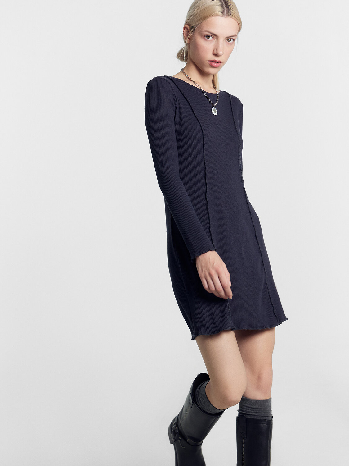 Платье женское полуприлегающего силуэта из трикотажного полотна рибана.