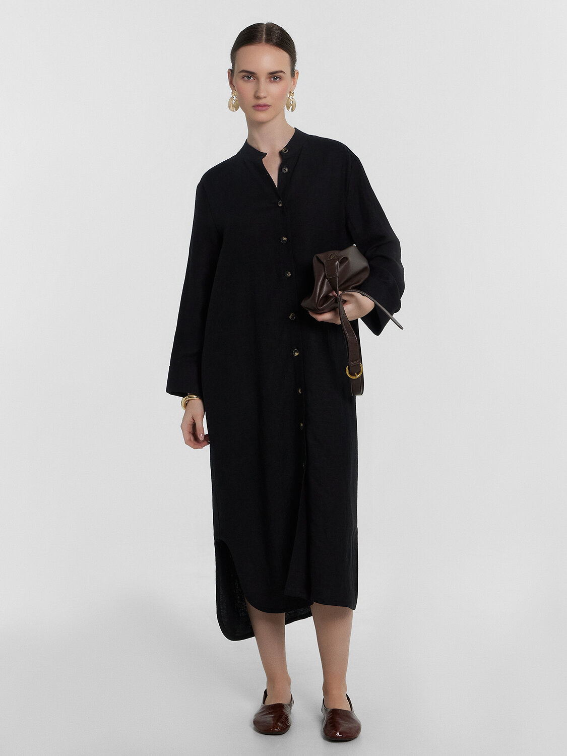 Платье рубашка женское прямого силуэта из ткани со льном.