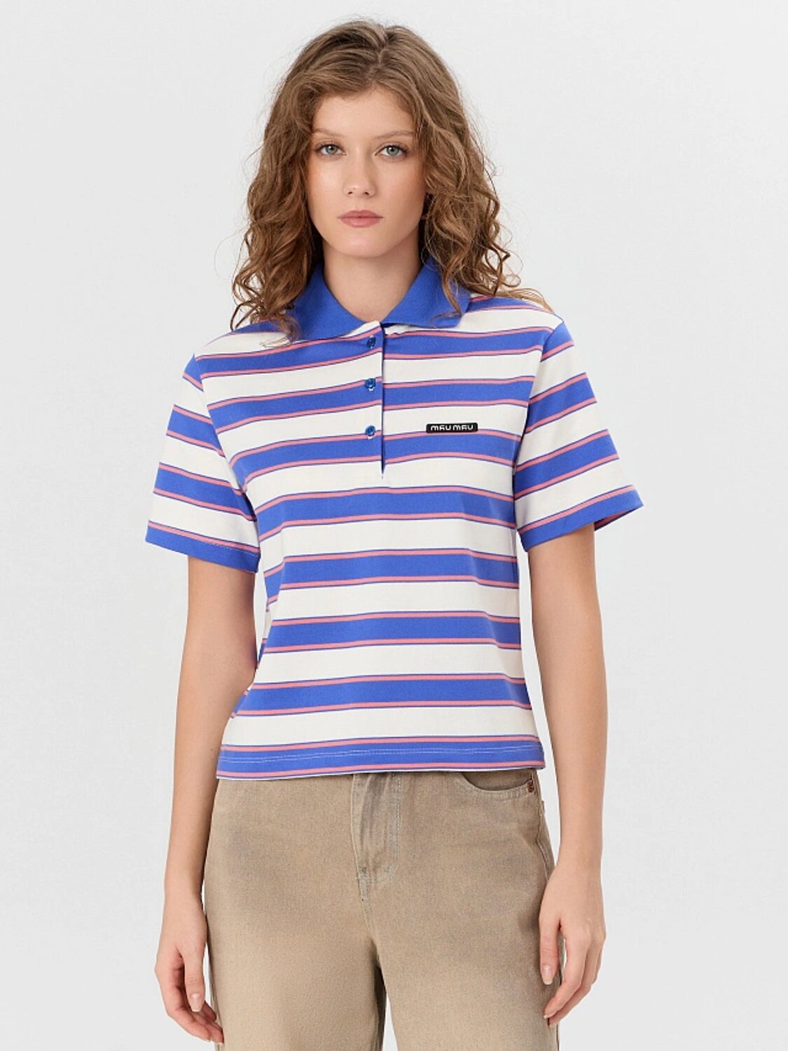 Женское поло в полоску — это классика с современным силуэтом. Прямой свободный крой и слегка спущенная линия плеча обеспечивают удобство и свободу движений. Короткие рукава идеально подходят для теплой погоды.