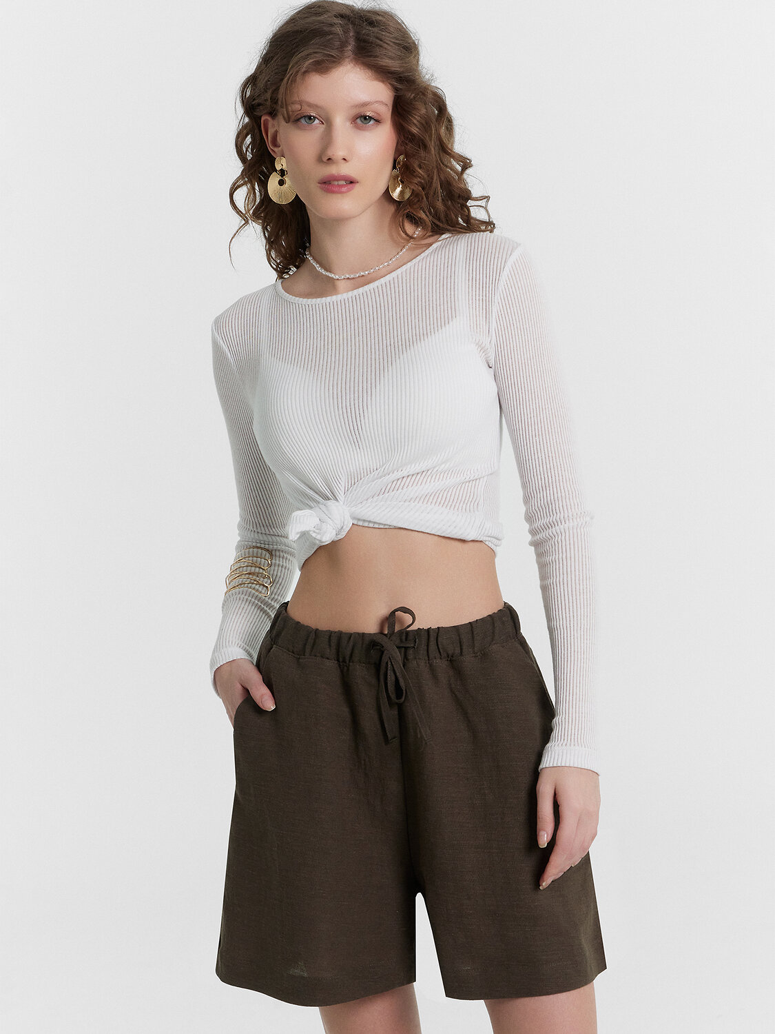 Женские шорты свободного силуэта с боковыми карманами и эластичным поясом на кулиске - это идеальное сочетание комфорта и стиля. Модель выполнена из смесового льна и вискозы, что придает изделию уникальные преимущества. Лён известен своей прочностью, долговечностью и прекрасной воздухопроницаемостью, что делает одежду из него идеальной для жаркой погоды. Он также обладает природными антибактериальными свойствами и гипоаллергенностью. В то время как вискоза добавляет мягкость и гладкость, улучшая тактильные ощущения и комфорт при носке.