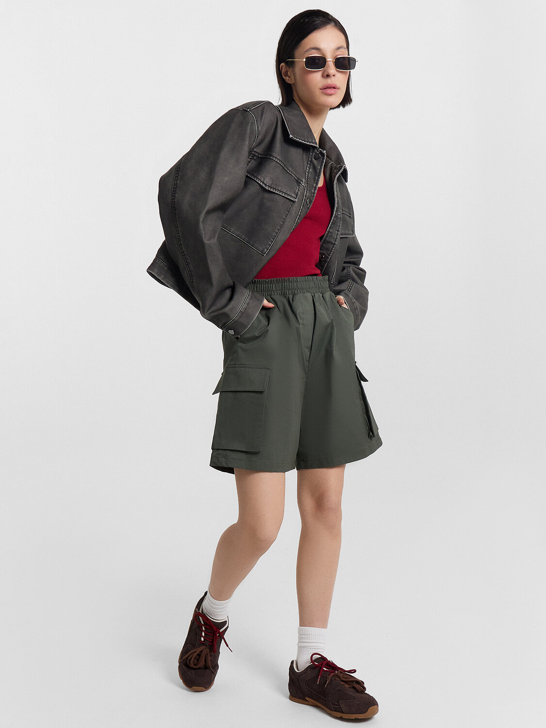 Женские шорты прямого силуэта — идеальный выбор для создания расслабленного и практичного образа, который подойдёт для тёплых дней и активного отдыха. Эластичная талия на кулиске обеспечивает идеальную посадку и комфорт в носке, легко адаптируясь к особенностям фигуры. Накладные карманы с клапанами спереди не только добавляют функциональности, но и подчеркивают стильный дизайн. Имитация гульфика придает изделию завершенный и аккуратный вид. Шорты длиной выше колена создают удобный и современный дизайн, который легко сочетается с различной одеждой. Материал из хлопка с добавлением искусственных волокон обеспечивает мягкость, прочность и воздухопроницаемость, делая эту вещь удобной для повседневного ношения. Сочетайте их с футболками, топами или легкими блузками, чтобы создать стильные образы для любых ситуаций! Эти шорты станут вашим надёжным выбором для летнего гардероба.