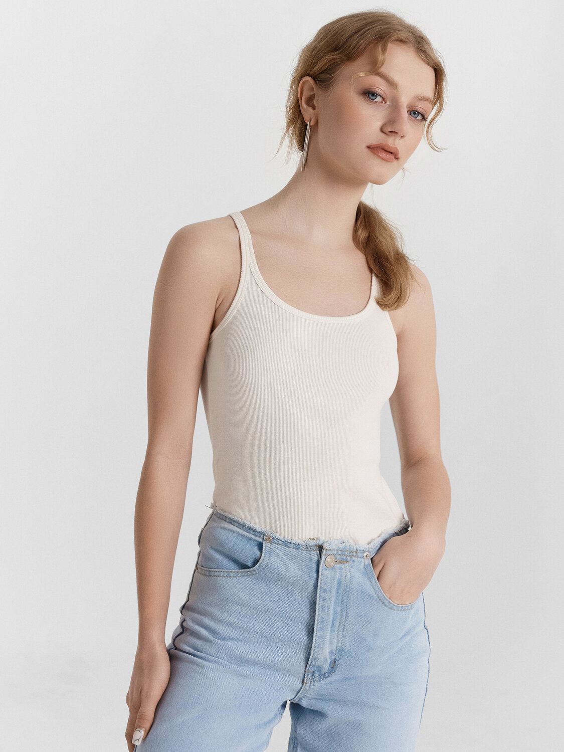 Топ женский прилегающего силуэта из трикотажного полотна рибана.