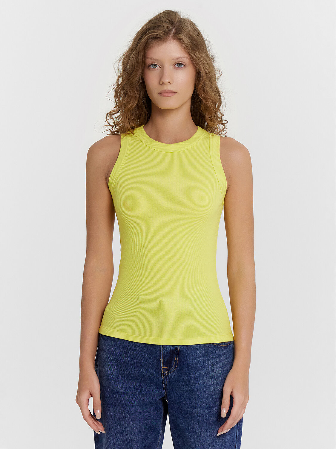 Горловина и проймы окантованы широкой бейкой из основного полотна.