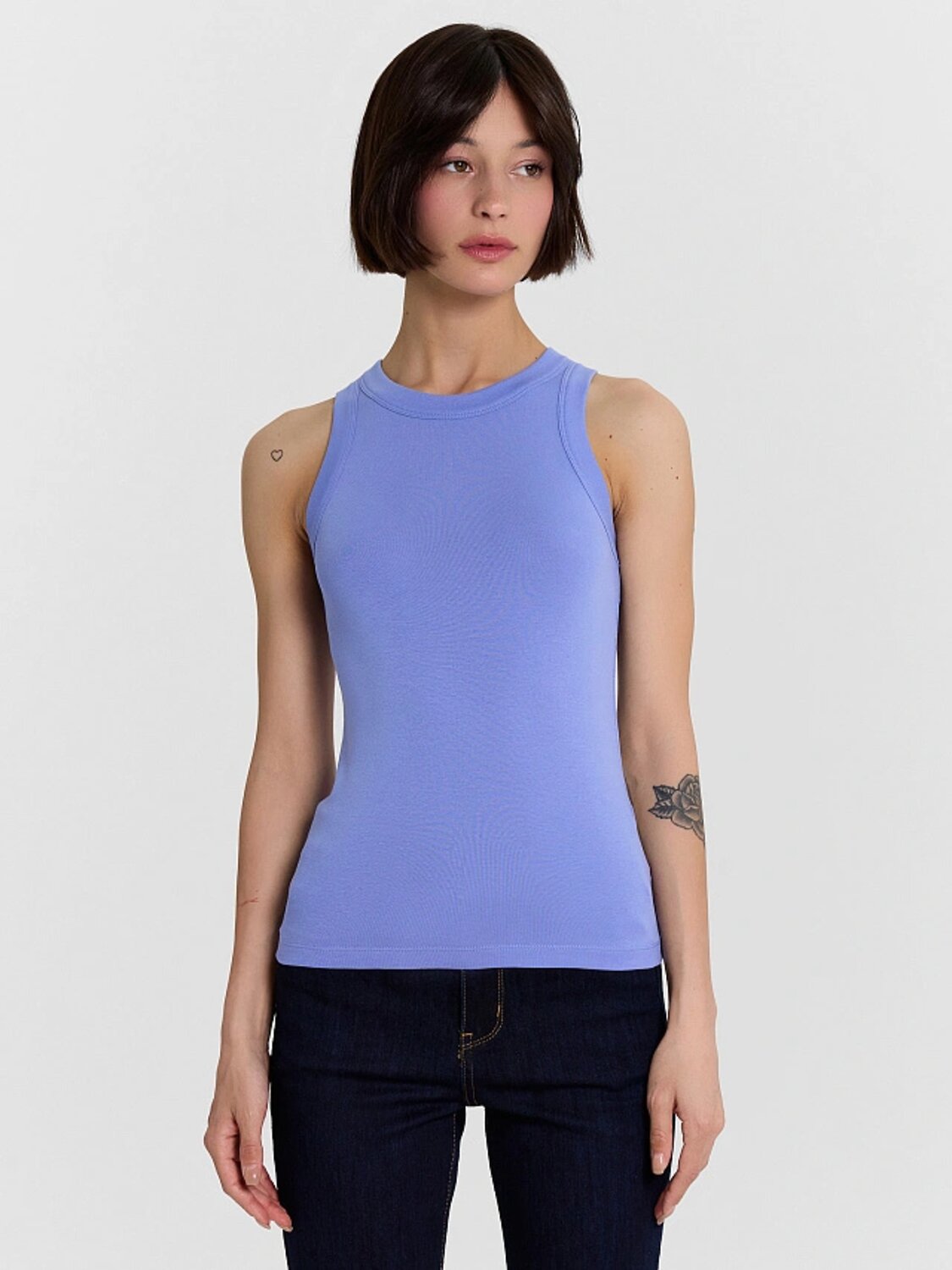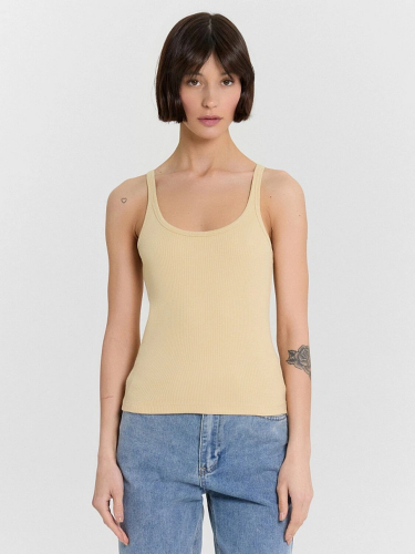Горловина и проймы окантованы широкой бейкой из основного полотна.