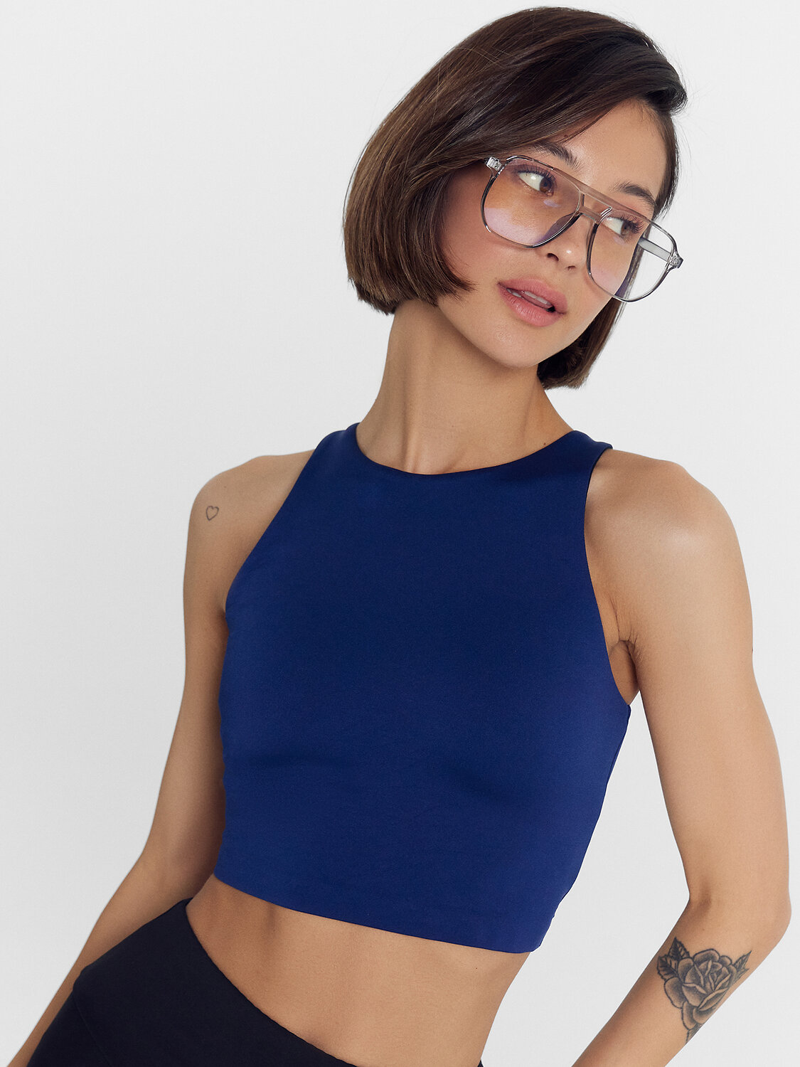 Топ облегающего силуэта, длиной до талии. Горловина округлой формы, пройма американская. По пройме и горловине притачена эластичная тесьма жилка 6мм (Devsel 13460W) Перед топа и подкладка переда с подформовкой. Подкладка спинки из сетки. По низу подкладки притачана эластичная тесьма внутренняя.