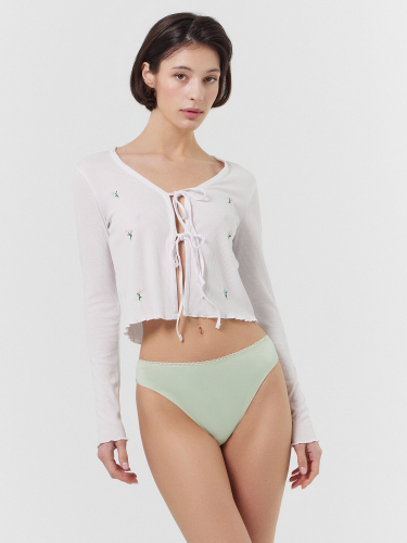 Трусы женские, силуэт бразилиана, из кулирного полотна, со средней посадкой. Передняя и задняя детали трусов цельные. Подкладка ластовицы из кулирного полотна, отлетная по переднему срезу.