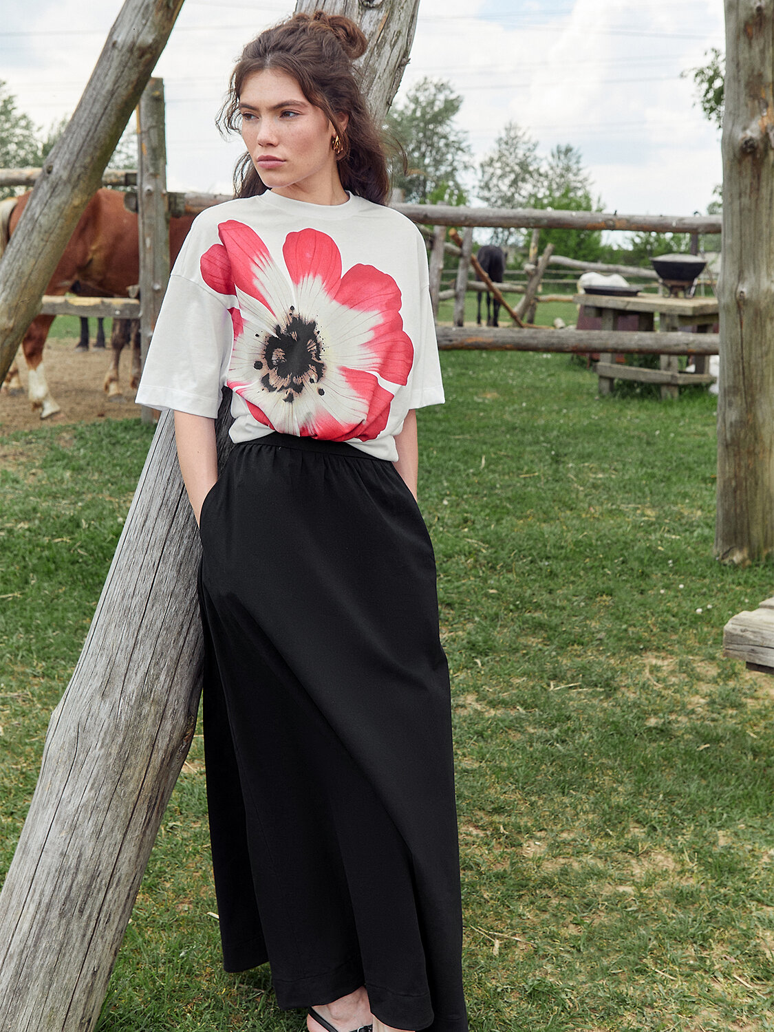 Пояс отрезной из основного полотна. Передняя часть пояс гладкая, задняя деталь пояса с эластичной тесьмой внутри. В боковых швах обработаны карманы.