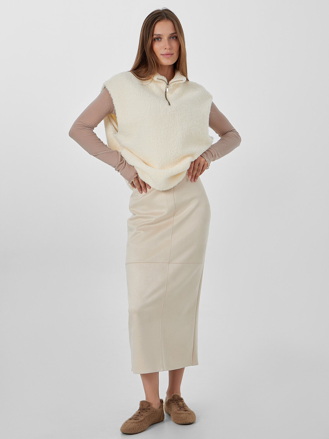 Женская юбка полуприлегающего силуэта станет элегантным дополнением вашего гардероба. Модель ниже колена плавно заужена книзу, что создает утонченный силуэт.
