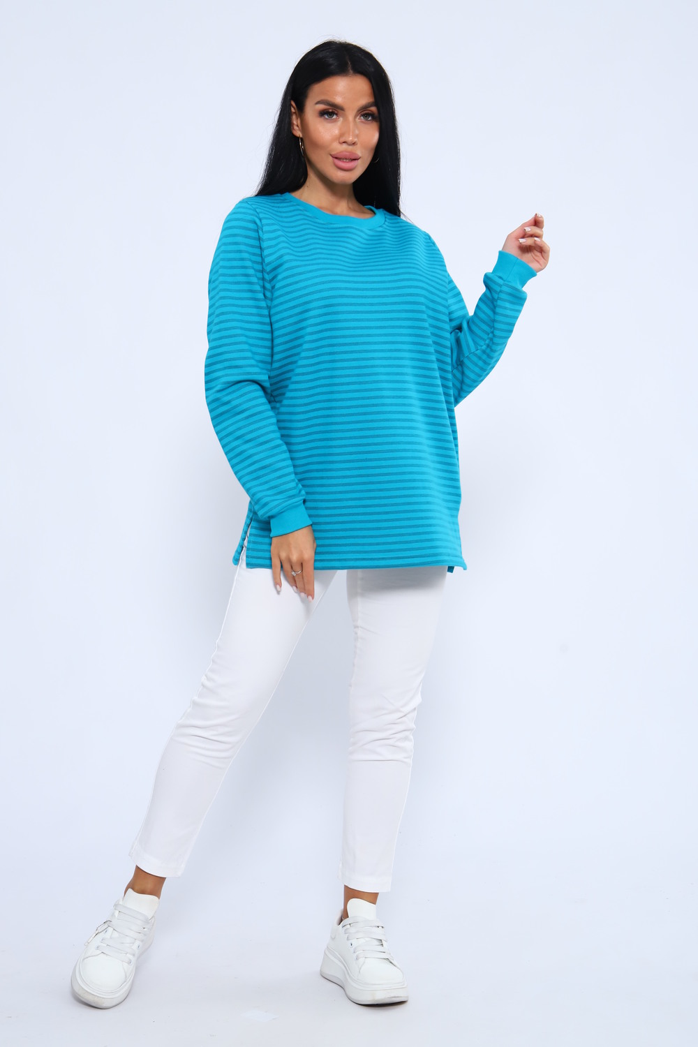 Стильный базовый свитшот оверсайз идеальный выбор для каждого сезона! Эта свободная кофта женская в полоску станет неотъемлемой частью вашего гардероба. Сделанный из приятной дышащей ткани, этот свитшот подходит как для повседневной носки, так и для более формальных мероприятий: в офис, в школу, на прогулку или даже в университет. Цвет: бирюзовый;сиреневый; Материал: дабл фейс;дабл фейс; Состав: хлопок 85%, п/э 15%.