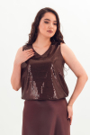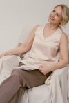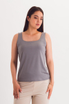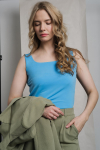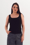 Описание: Майка приталенного силуэта с окантованной горловиной и узкими бретелями.