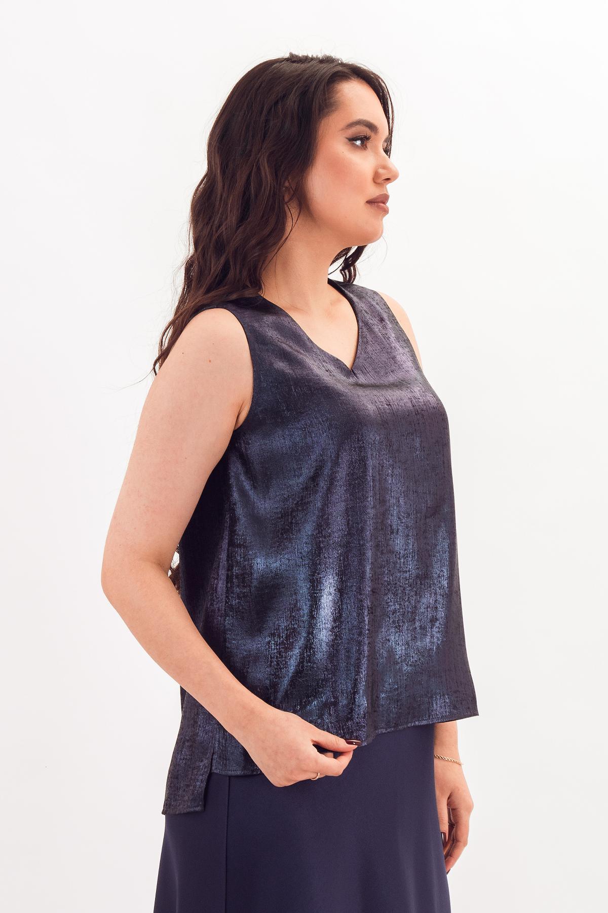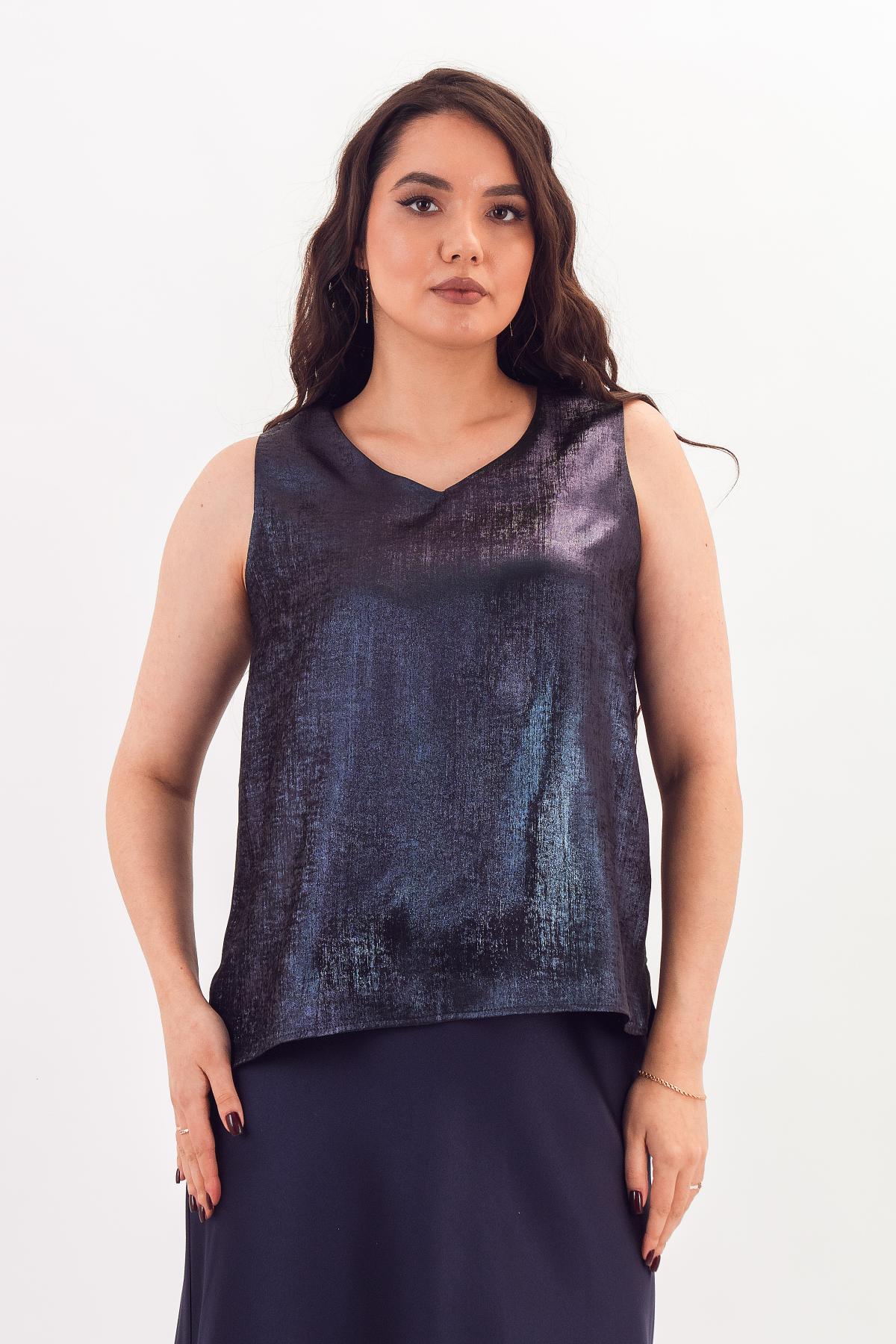 Описание: Свободная удлиненная майка из струящейся ткани не облегает фигуру, позволяя материалу струиться вокруг тела. Неглубокий V-образный вырез деликатно приоткрывает зону декольте. Переход длины по низу изделия добавляет ему динамики.