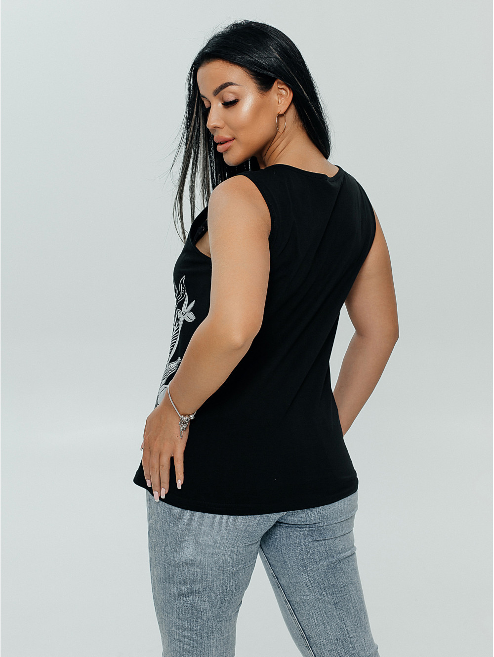 Майка женская БАЛИ на широких бретелях. Полочка украшена принтом. Идеальный выбор под жакеты, джемпера.