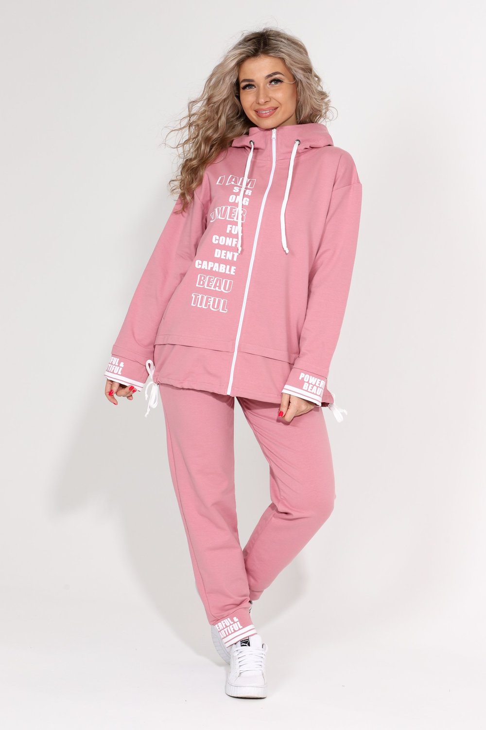 Спортивный костюм выполнен из качественного материала футер 2-х нитка с лайкрой. Спортивный женский костюм больших размеров состоит из спортивных штанов и свитшота свободного кроя на молнии. Идеален для повседневной комфортной жизни, прекрасно подходит для поездок и отдыха за городом, для фотосессии и спорта. Комфортный для домашнего использования.
