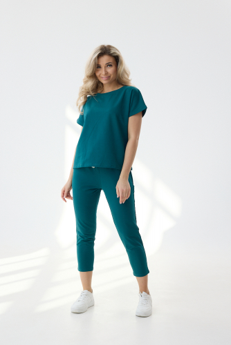 Представляем Вашему вниманию стильный и удобный костюм, изготовленный из качественного материала. Костюм состоит из укороченных брюк и футболки. Наряд обладает исключительной нежностью и мягкостью, которые не проходят через долгое время и позволят Вам наслаждаться комфортом. Очаровательная расцветка этого костюма подарит Вам хорошее настроение и положительные эмоции.