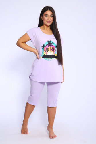 Представляем вашему вниманию женский домашний спортивный костюм, который идеально подходит для комфортного времяпрепровождения дома и на даче. Этот комплект включает в себя удобную футболку и стильные бриджи, которые глубоко заботятся о вашем комфорте. Изготовленный из мягкого и дышащего материала, он отлично подходит для расслабления и активного отдыха. Футболка обладает лаконичным дизайном, что добавляет универсальности, а бриджи прекрасно сочетаются с ней, создавая непринужденный ансамбль. Такой набор станет идеальным выбором в качестве домашней пижамы, позволяя вам чувствовать себя уютно и привлекательно.