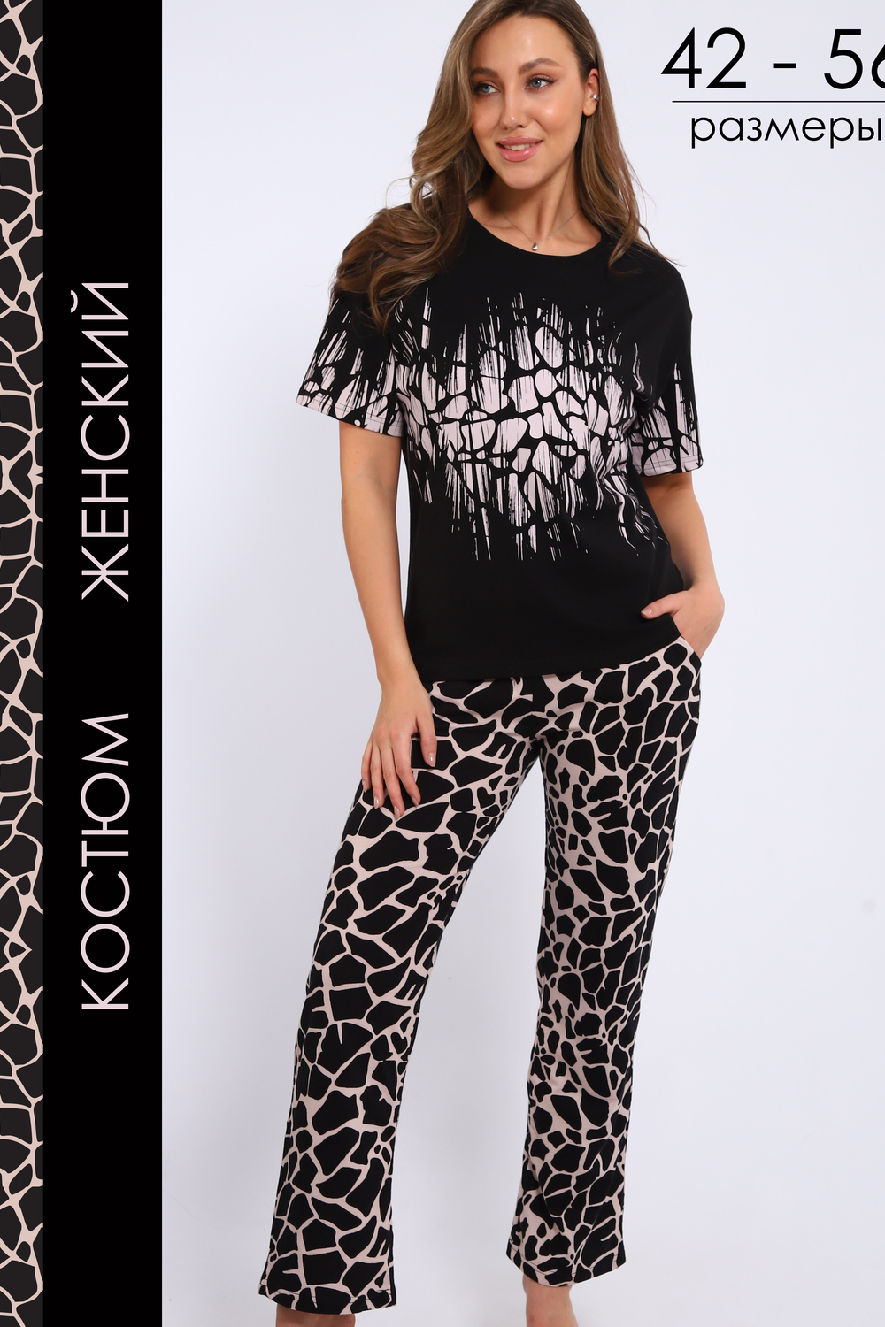Представляем вашему вниманию стильный и комфортный женский костюм от бренда Modellance, идеально подходящий для летних дней. Этот костюм состоит из свободных брюк с ярким принтом жираф, который добавляет нотку экзотики и оригинальности в ваш повседневный гардероб. Изготовленный из мягкого и дышащего хлопка, он обеспечит вам максимальный комфорт в любое время дня, будь то отдых на даче или уютные вечера дома. Свободный фасон позволяет свободно двигаться, а легкость материала делает его идеальным выбором для жаркой погоды. Брюки отлично сочетаются с простыми топами и футболками, что позволяет создавать разнообразные образы для повседневной носки. Этот костюм станет вашим незаменимым спутником в летние дни, придавая уверенность и стиль в каждой детали. Наслаждайтесь комфортом и элегантностью с этим прекрасным летним костюмом!