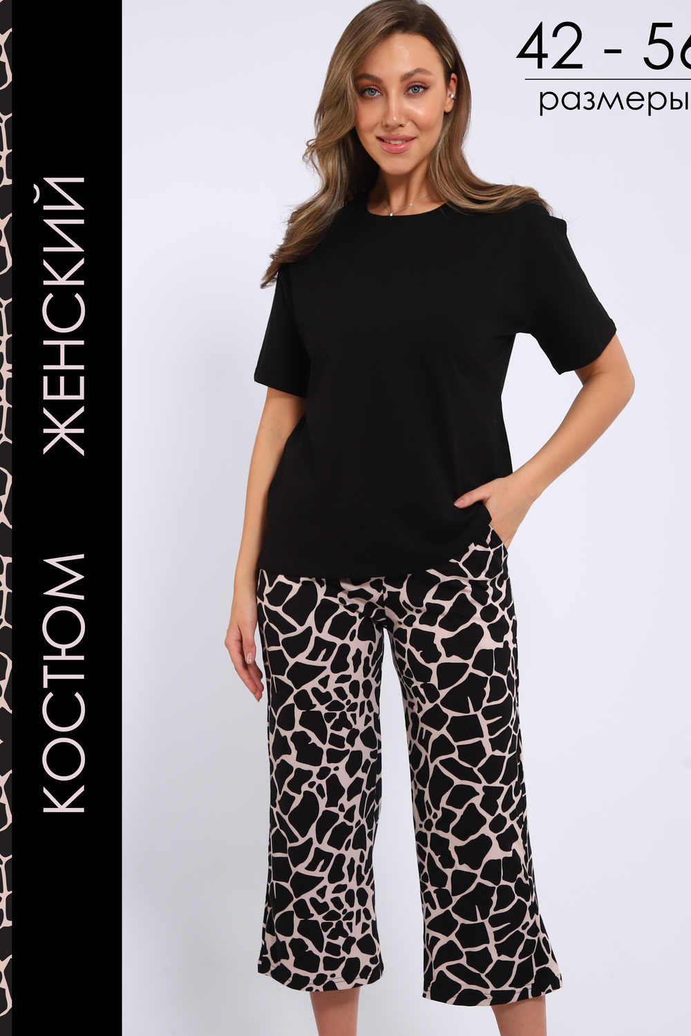 Представляем вашему вниманию стильный и комфортный женский костюм от бренда Modellance, идеально подходящий для летних дней. Этот костюм состоит из свободных укороченных брюк палаццо с леопардовым принтом, который добавляет нотку экзотики и оригинальности в ваш повседневный гардероб. Изготовленный из мягкого и дышащего хлопка, он обеспечит вам максимальный комфорт в любое время дня, будь то отдых на даче или уютные вечера дома. Свободный фасон позволяет свободно двигаться, а легкость материала делает его идеальным выбором для жаркой погоды. Брюки отлично сочетаются с простыми топами и футболками, что позволяет создавать разнообразные образы для повседневной носки. Этот костюм станет вашим незаменимым спутником в летние дни, придавая уверенность и стиль в каждой детали. Наслаждайтесь комфортом и элегантностью с этим прекрасным летним костюмом!