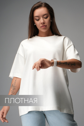 Базовая футболка оверсайз создана для тех, кто любит сочетание свободы движений и актуального дизайна. Удлиненный рукав до локтя придает образу расслабленную элегантность, а светлый молочный цвет делает эту стильную находку универсальной.