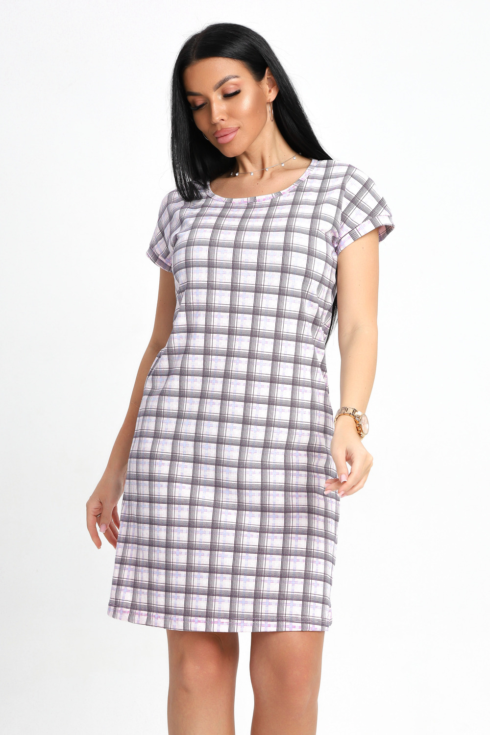 Туника женская полуприталенного силуэта. Рукав цельнокроенный с манжетой. Горловина окантована, низ обработан подгибкой. Цвет: розовая клетка; Материал: кулирка;кулирка; Состав: 100% хлопок.