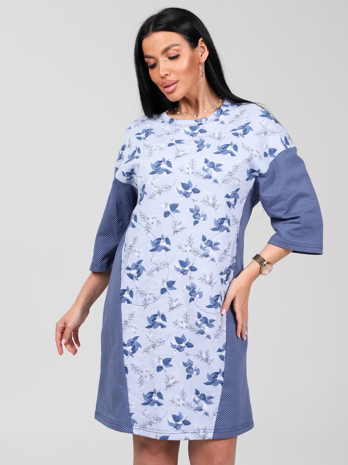 Утепленная женская туника выполнена из комбинации тканей футер с начесом. Модель прямого покроя с рукавом ¾ и карманами.  Перед туники украшает цветочный принт.  Туника очень нужный и актуальный элемент гардероба,  для представительниц прекрасного пола, которые предпочитают элегантность и женственность в одежде . Туника поможет создать Вам лаконичный образ, вы будете выглядеть великолепно.