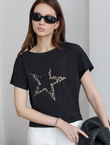 Эта нарядная футболка подходит для создания образа на каждый день и идеально подойдет на выход. Модель не мнется, что делает ее практичным вариантом для активных женщин, которые ценят стиль и удобство.
