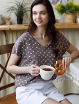 Стильная базовая футболка кофейного цвета с принтом стразами выполнена из плотного хлопка с эластаном для комфортной посадки на любую фигуру. Прямая футболка классического кроя с круглым вырезом, прекрасно подходит для разных типов фигуры, в том числе и на большие размеры. Мягкость хлопка вместе с небольшой долей эластана гарантирует идеальную посадку и свободу движений. Легкая натуральная дышащая ткань премиального качества делает футболку с коротким рукавом идеальным вариантом для повседневной носки дома, на работу или офис. Однотонная футболка дополнена авторским аккуратным принтом, который придает праздничный и элегантный вид без лишней вычурности. Блестящий принт в виде россыпи страз аккуратно украшает, добавляя изысканный акцент и создавая легкий мерцающий эффект.