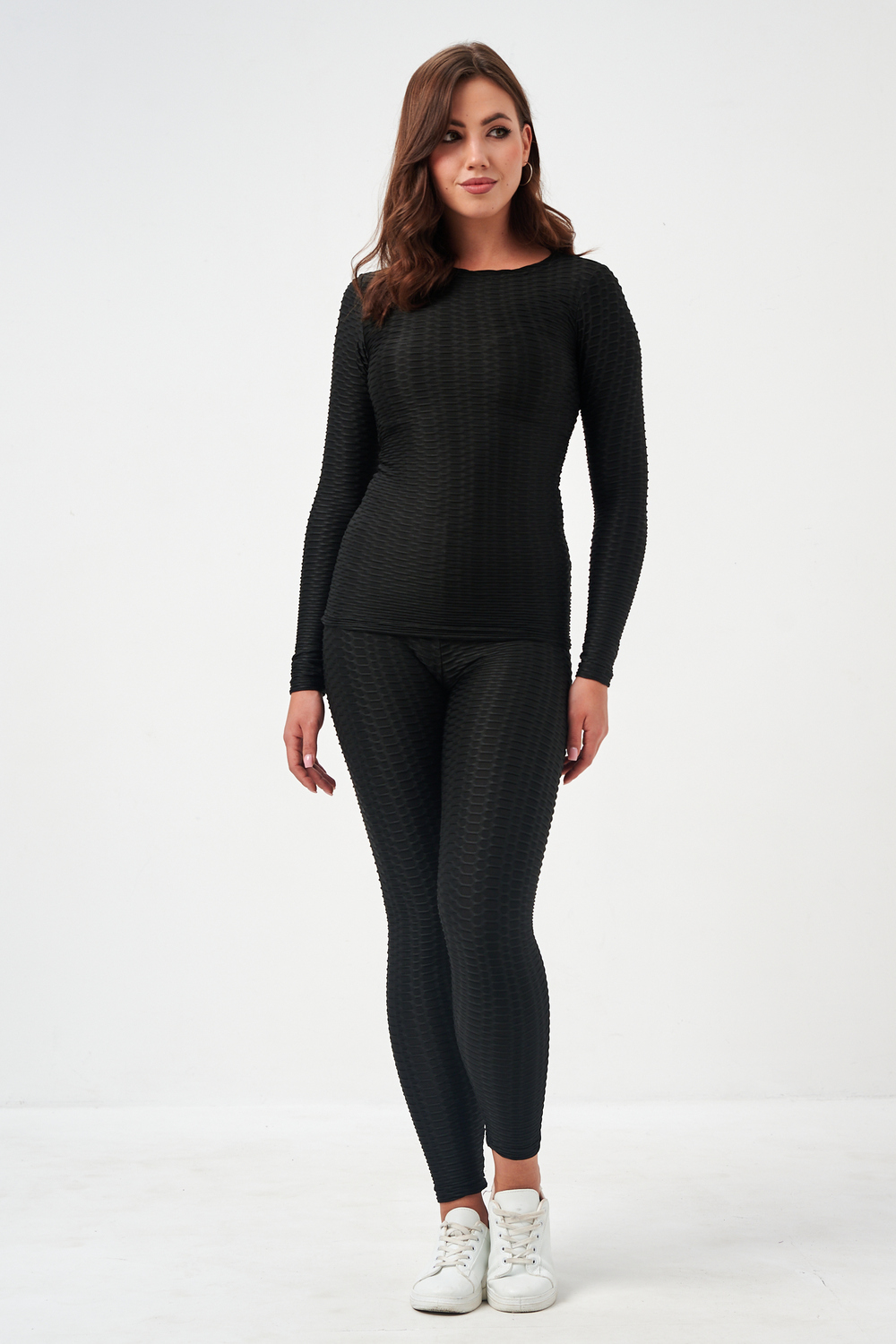 Костюм женский с лосинами (спорт) Цвет: черный; Материал: полиэстер;полиэстер; Состав: 100% полиэстер.