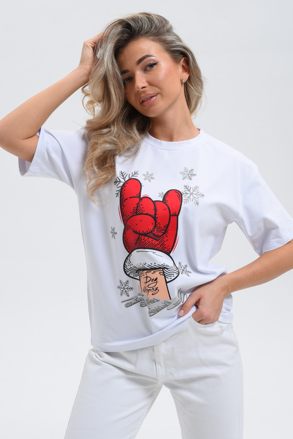 Женская футболка оверсайз это идеальный выбор для девушек, которые любят сочетать комфорт и стиль. Стильная и качественная, она доступна в любом размере, включая большой до 56. Свободный крой подойдет в том числе и для беременных женщин. Высокие стандарты качества делают её универсальным элементом гардероба, подходящим для создания модных повседневных образов. Она идеальна для взрослых и подростков, предпочитающих спортивную и яркая одежду. Высокая плотность ткани 200гр/куб.м. Цвет: белый+рука; Материал: кулирка с лайкрой;кулирка с лайкрой; Состав: хлопок 92%, лайкра 8%.