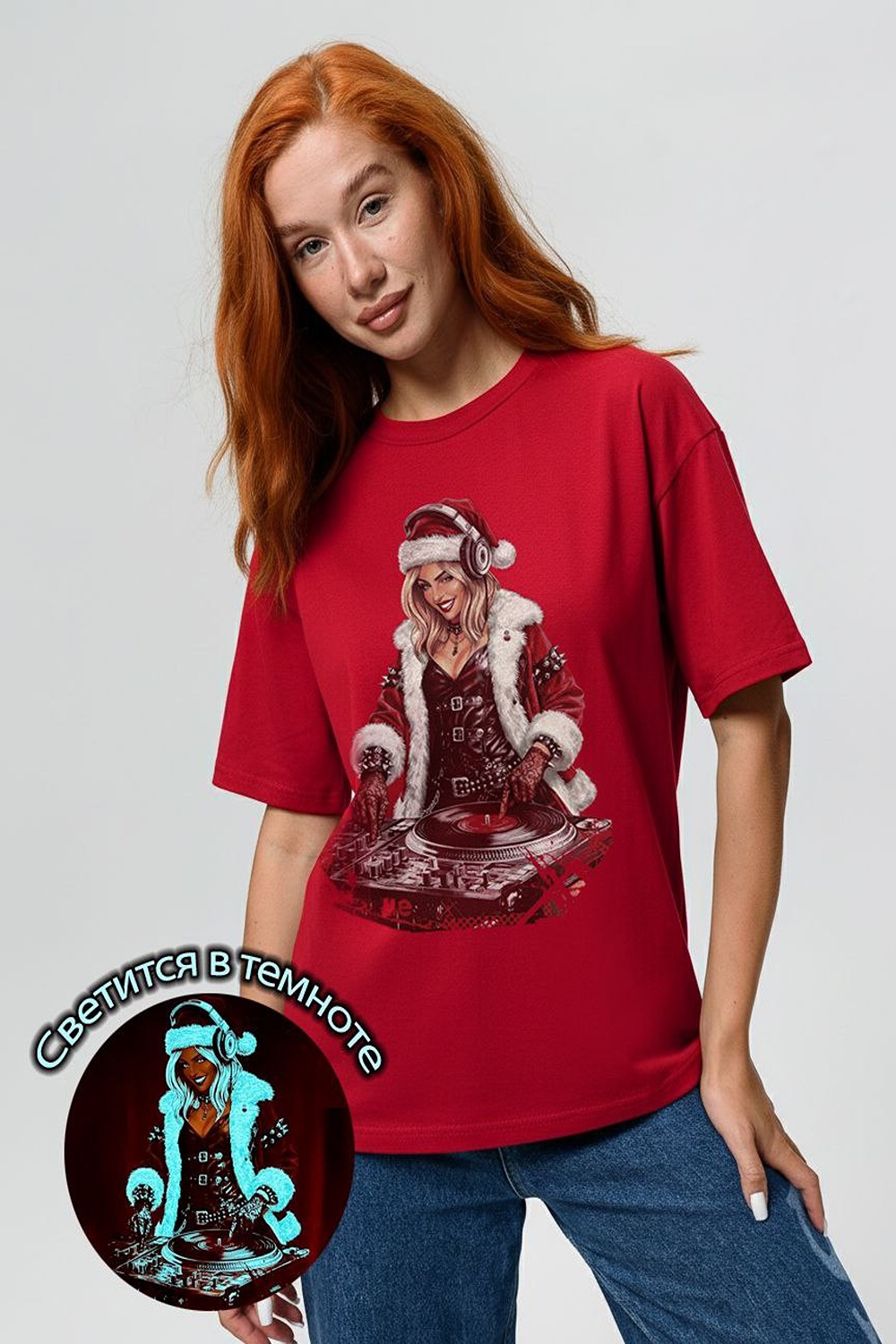 Погрузитесь в магию праздника с нашей стильной oversize-футболкой Санта-Диджей! Эта яркая красная футболка создана для тех, кто любит миксовать новогоднюю атмосферу с ритмом музыки. Главная героиня принта соблазнительная Санта в меховой накидке, с красной шапкой и наушниками, уверенно стоящая за диджейским пультом. Её образ сочетает классический рождественский стиль с современным уличным вайбом: белый мех, чёрная кожаная одежда и динамичная поза, полная энергии. Цвет: красный+диско снегурочка;бордовый+диско снегурочка; Материал: ; Состав: .